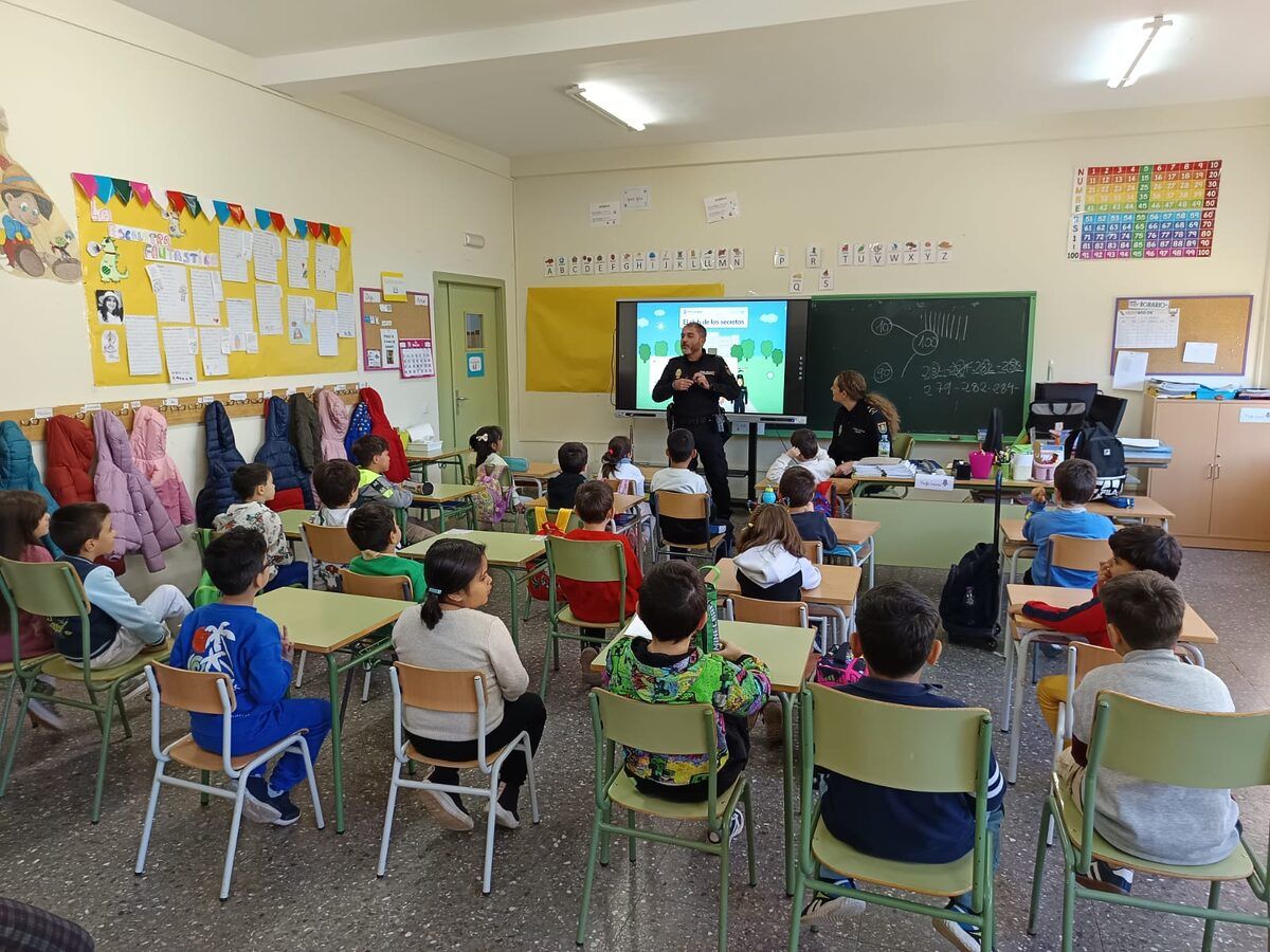 Hoy hemos recibido la vista de dos policías locales de Cáceres para impartir una charla al alumnado de 2º denominada El club de los secretos y transmitirles unas normas de Educación Vial.